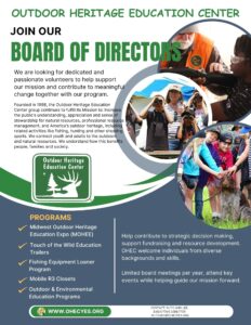 Founded in 1998, the Outdoor Heritage Education Center group continues to fulfill its Mission to: